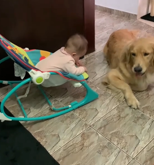 Seja durante as trocas de fralda, as mamadas ou as sonecas, a golden faz questão de estar presente, como uma verdadeira irmã mais velha.