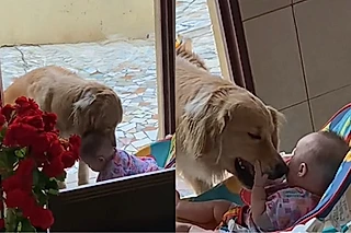 Mulher filma como sua golden retriever trata bebê quando ela não está perto