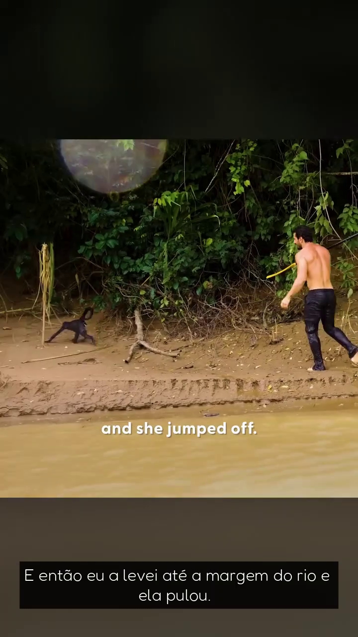 Ele conseguiu então atravessar o rio com o primata e, ao chegar à margem, a macaca pulou para a areia e, visivelmente aliviada, correu para a floresta.