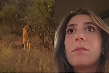 Foi o que aconteceu com a artista Jhenny Keller, que viveu momentos de medo e coragem ao se ver frente a frente com um leão durante seu tão sonhado safári na África.