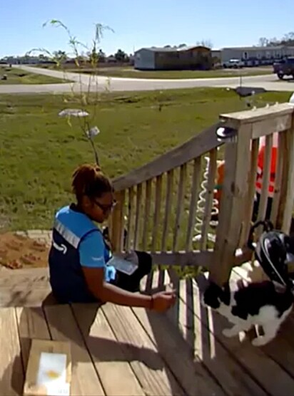 “Recebi uma notificação no meu aplicativo Ring e vi a entregadora da Amazon fazendo uma pausa para cumprimentar e acariciar meu gato, Lyric”, contou Heather, que preferiu manter o anonimato completo.