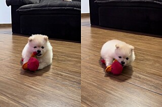 Família pega filhote de Lulu da Pomerânia achando que não cresceria muito, mas pet surpreende quando adulto
