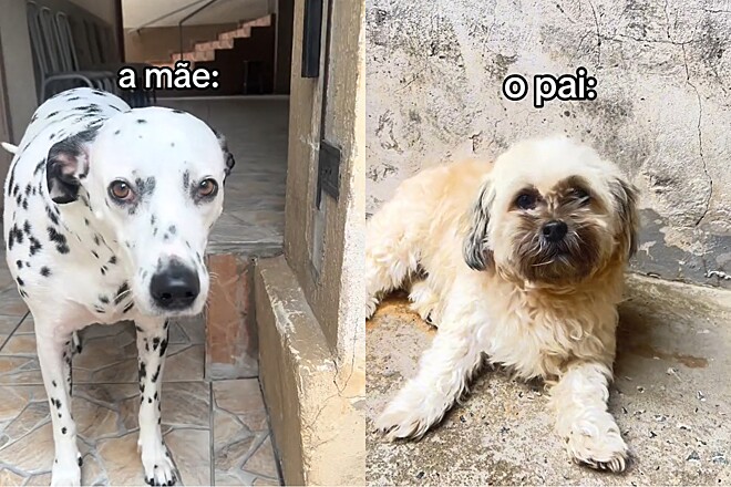 O pai? Um cão de pelos longos, encaracolados e bem charmoso, tipo aquele tio que nunca penteia o cabelo mas todo mundo acha estiloso.