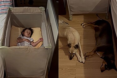 No ano passado a mãe viralizou mostrando a rotina que ela cita neste novo vídeo, onde Maria dorme todos os dias com as cachorrinhas. Assista abaixo para entender: