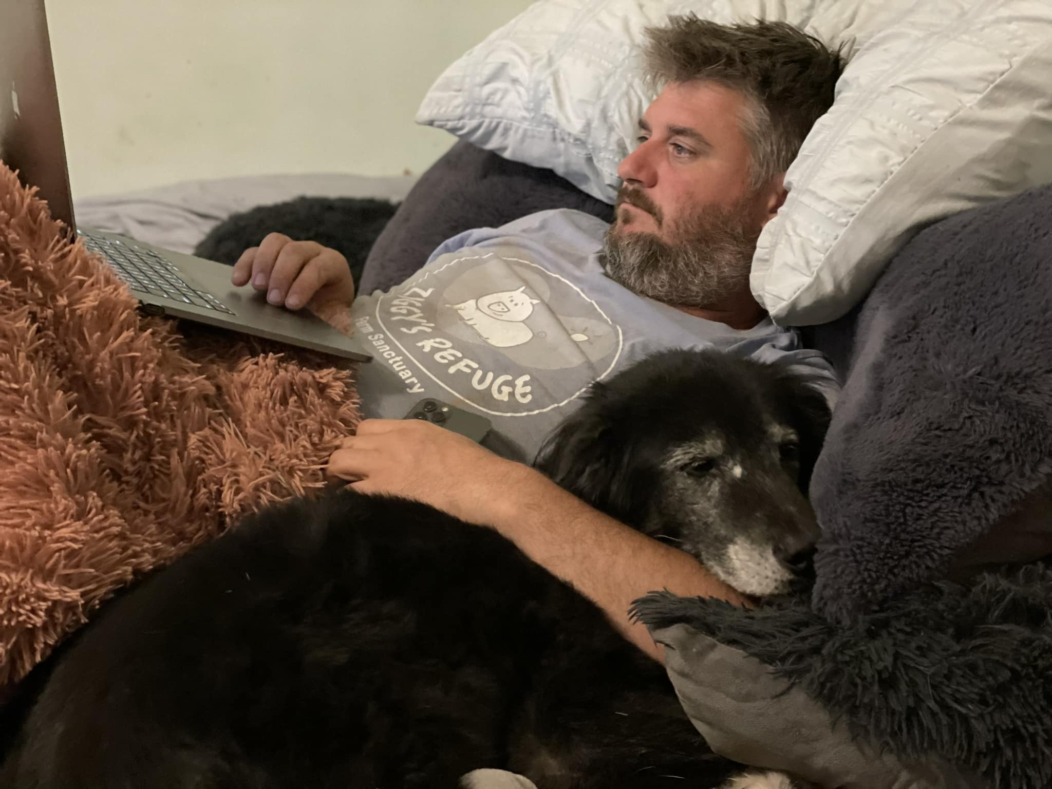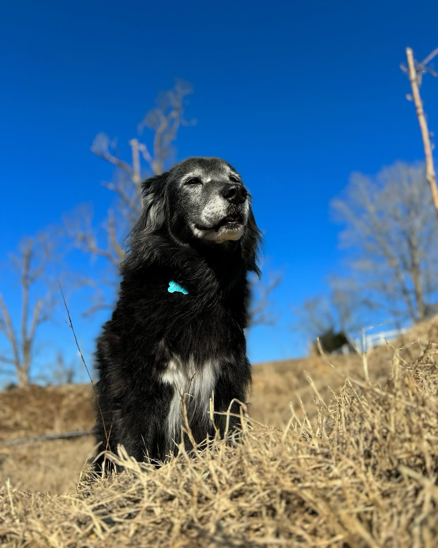 “Quando compramos a fazenda, nos disseram que junto viriam um cachorro, dois gatos e alguns cavalos idosos. Conhecemos Whitey e imediatamente nos apaixonamos pelo cão dos nossos sonhos”, contou o casal nas redes sociais.