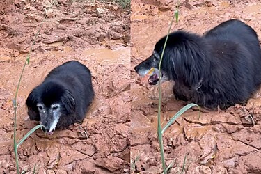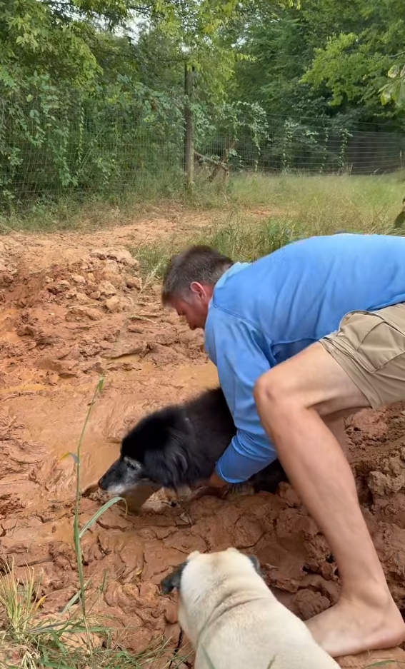 Cão idoso passa horas afundando na lama — até que um herói o encontra se debatendo