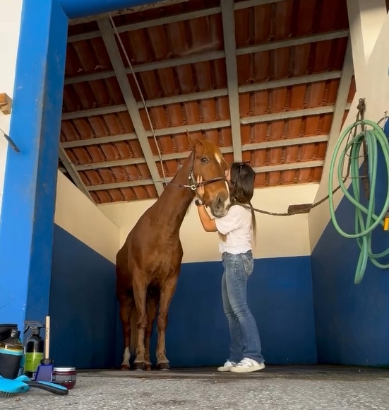 Carolina se mudou para Portugal, mas nessa viagem deixou parte do coração no Brasil: Tyler, o cavalo de quem ela cuida desde o nascimento e com quem construiu um forte laço de amizade.