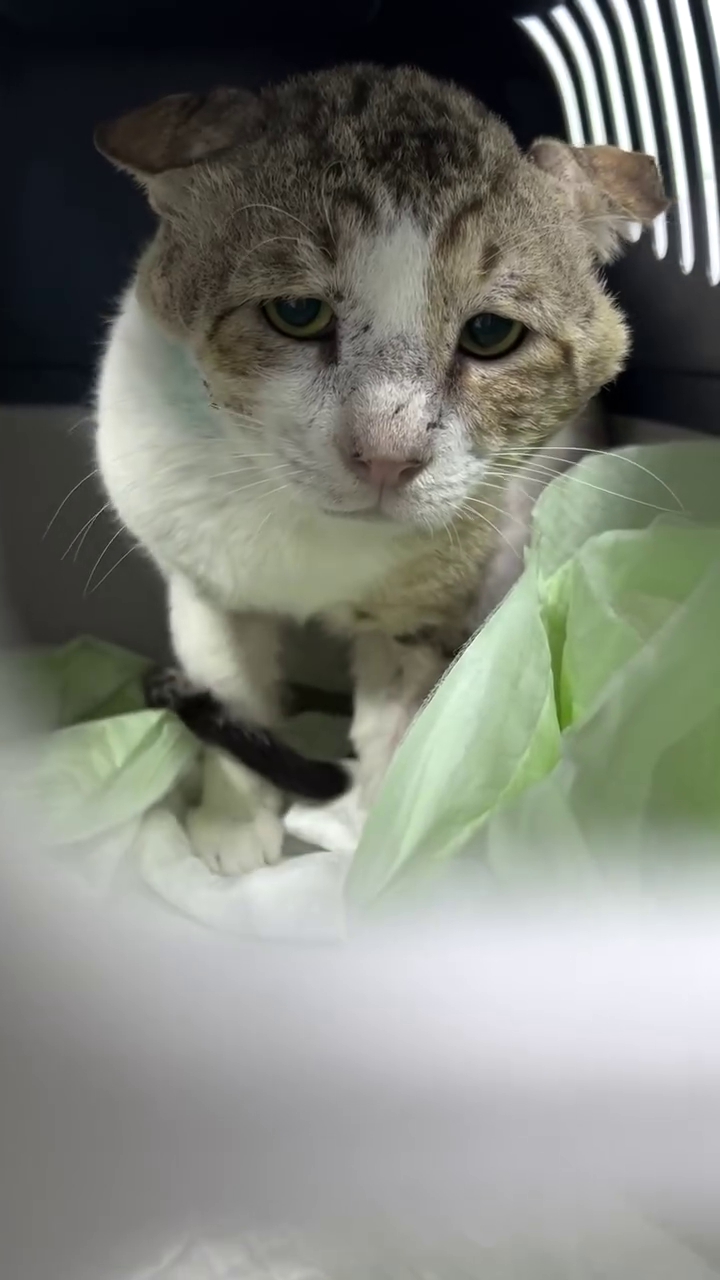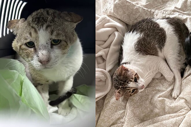 A transição para o lar temporário foi delicada. RJ’s Moggies, responsável por acompanhar a fase de adaptação, contou em depoimento ao portal The Dodo que a primeira impressão foi de partir o coração.
