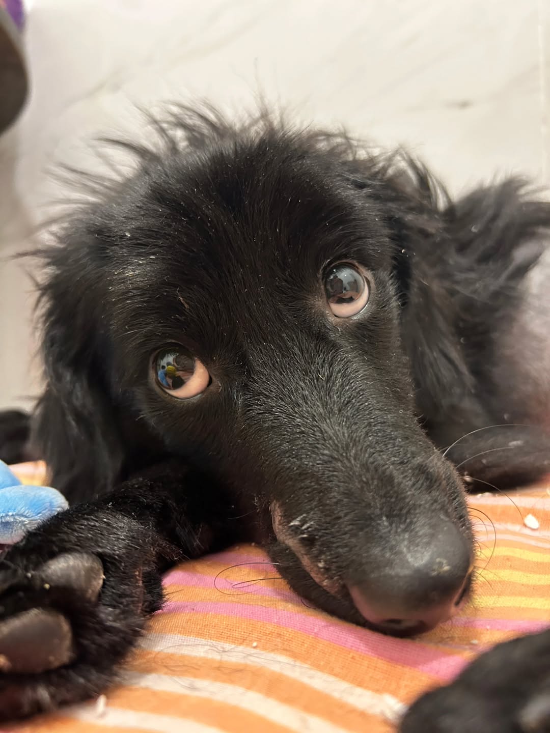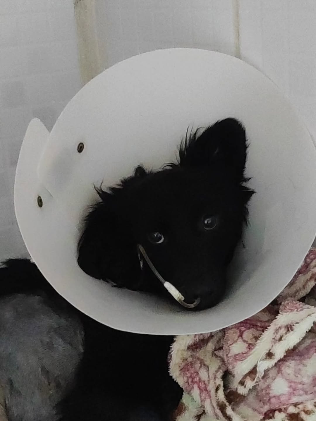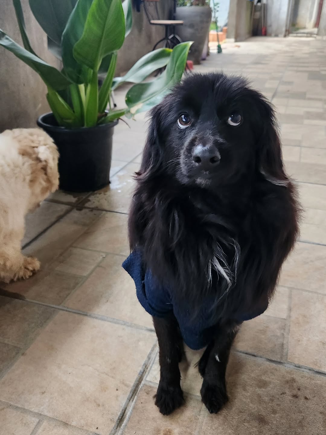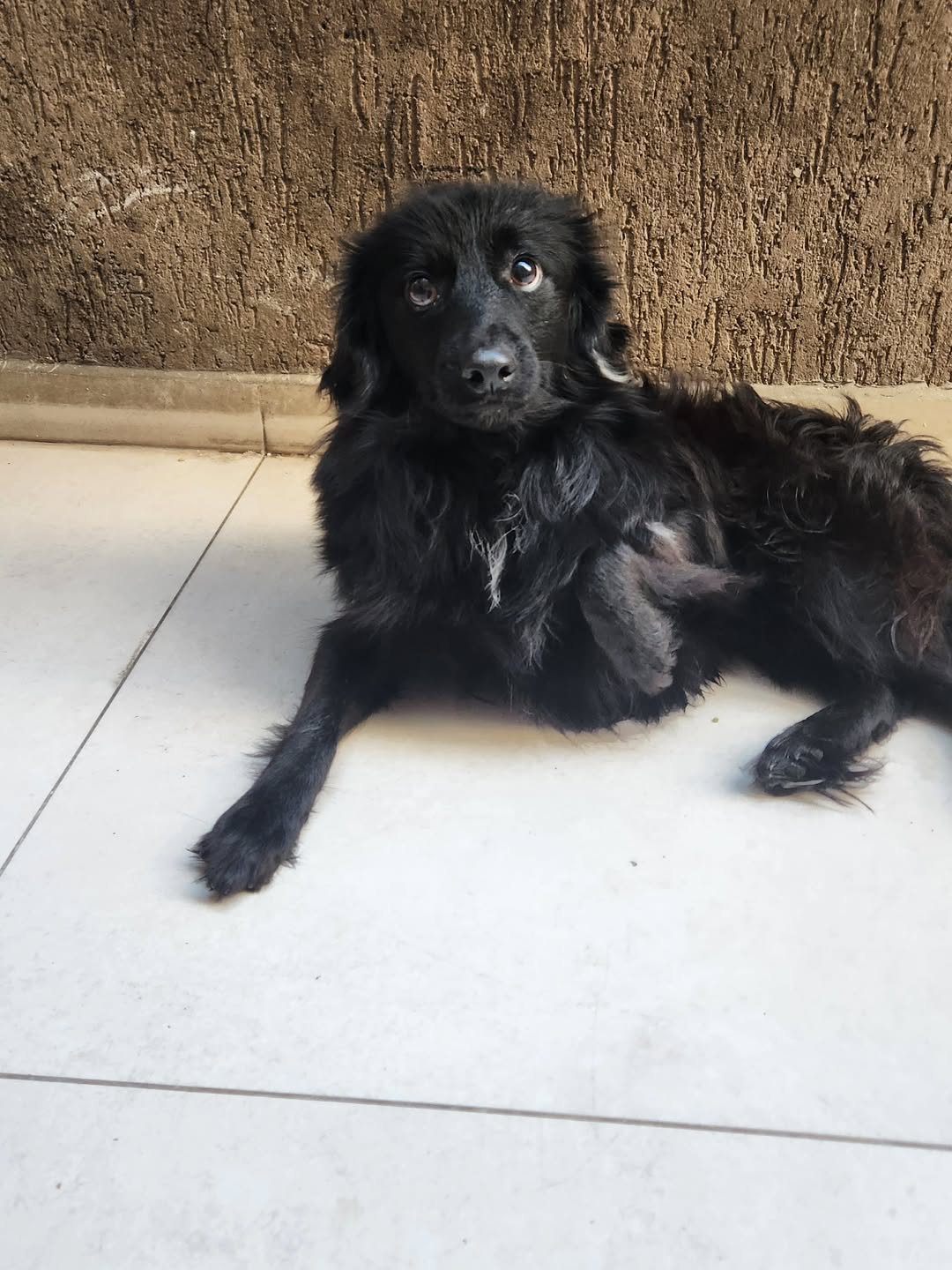 Rochinha é um vira-latinha de pelagem preta que quase teve sua vida ceifada.