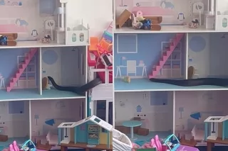Enquanto o resgate não chegava, a cobra parecia bastante à vontade. O esconderijo escolhido pelo animal foi justamente a casa de bonecas das crianças, onde ela se enrolou como se fosse parte do cenário.