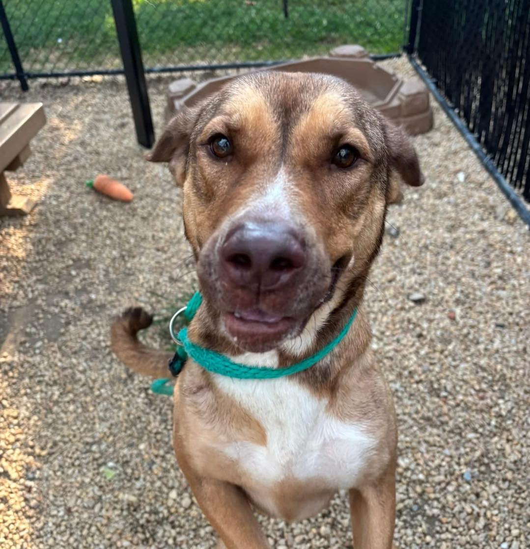 Uma cadela cor de caramelo, que estava a poucas horas de ser sacrificada, ganhou uma nova chance para a vida.