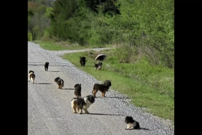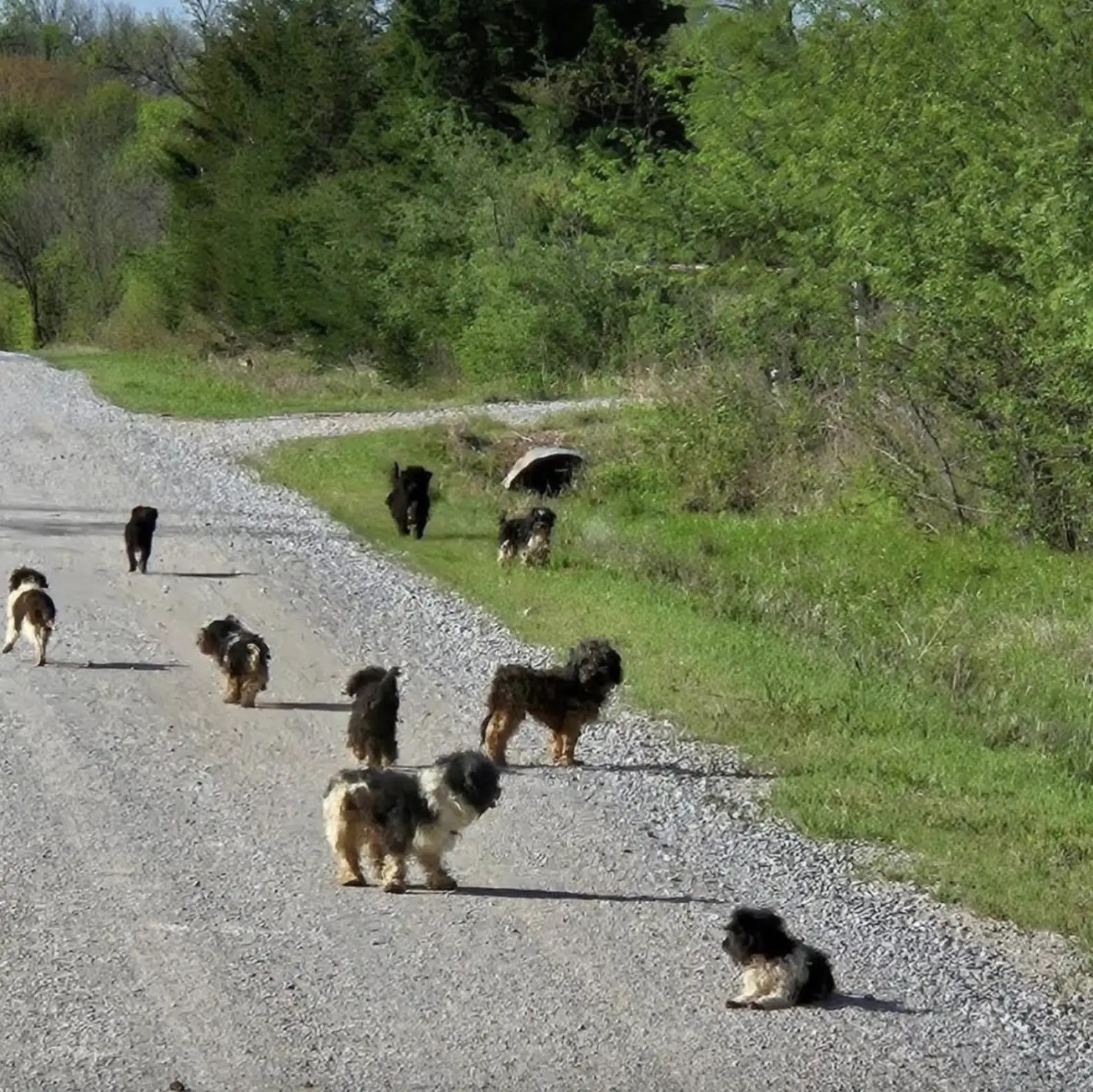 Mais cães começaram a surgir, um atrás do outro, como se o asfalto estivesse ‘dando à luz’ uma ninhada inteira em desespero.