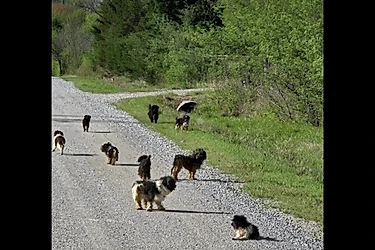 Motorista para imediatamente ao ver grupo de cães assustados na estrada