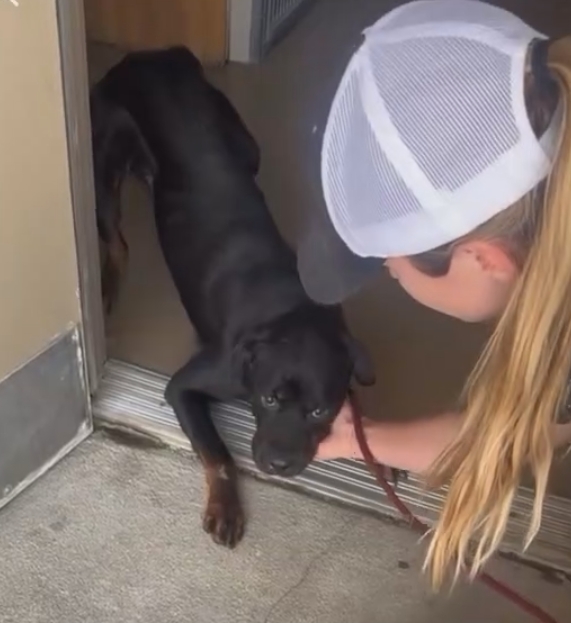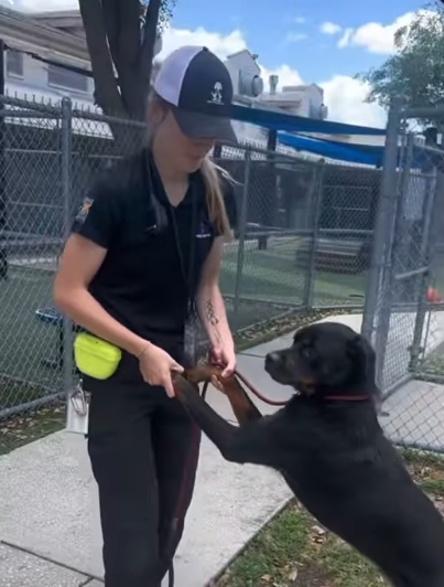 “É claro que ele teve muito pouco treinamento e socialização”, explicou a equipe do abrigo nas redes sociais. “Ele se assusta com tudo, especialmente com a guia. Quando chegou, se refugiava no fundo do canil e afastava os funcionários com as patas.”