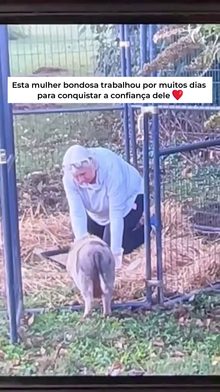 Com a ajuda da própria Karen, que o atraiu com comida dentro do cercado, o porco entrou tranquilamente na área demarcada.