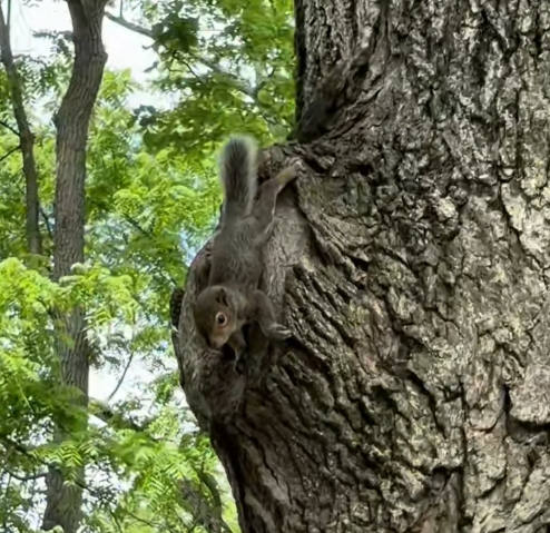 “Olha, é um bebê esquilo!”, diz uma.