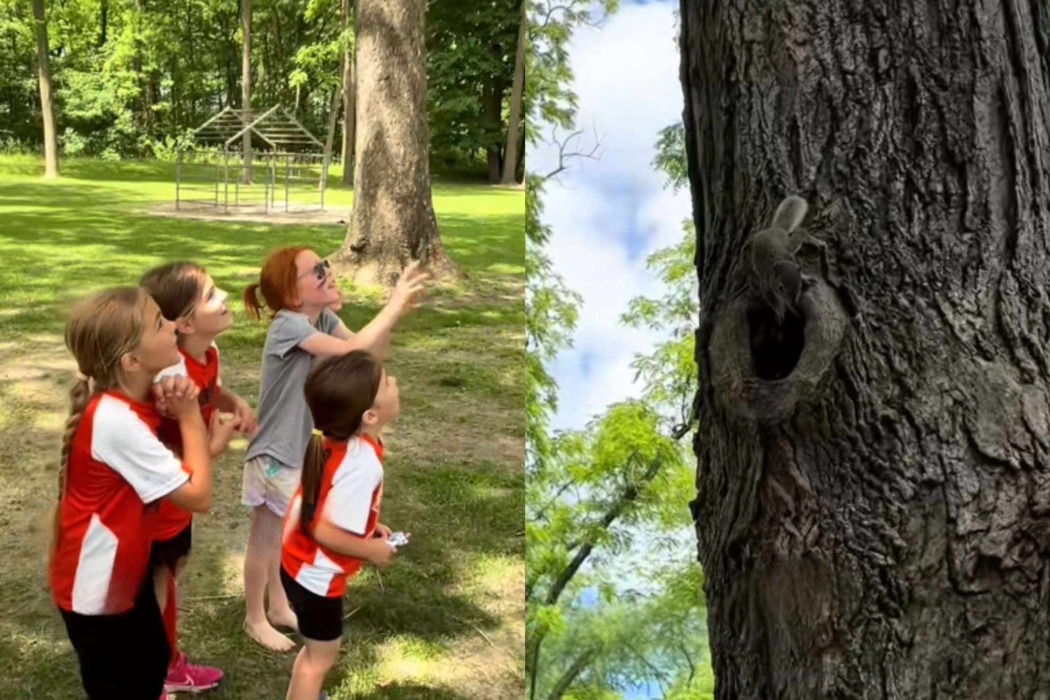 'Isso é ser menina': Mulher filma reação de grupo de meninas ao verem o animal mais fofo em árvore