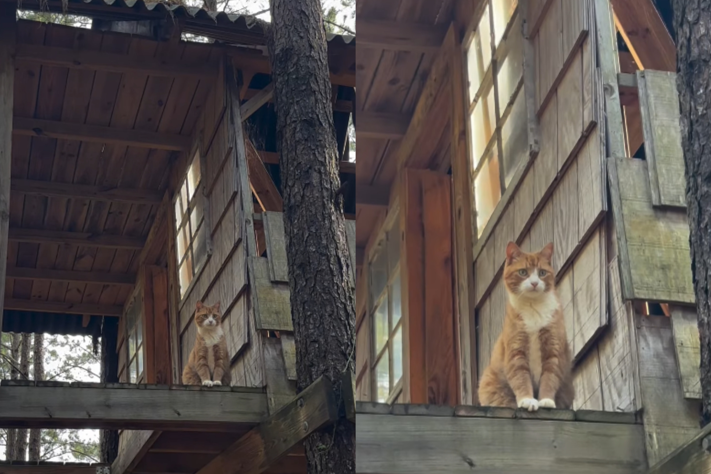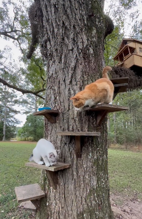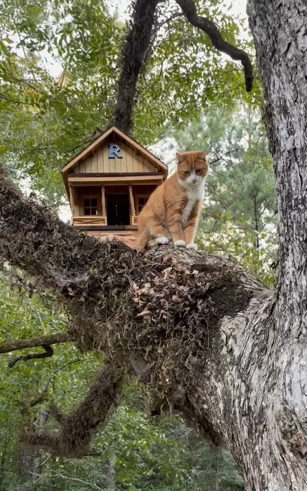 Homem constrói casa na árvore para gato tímido ter sua tão preciosa privacidade e resultado encanta