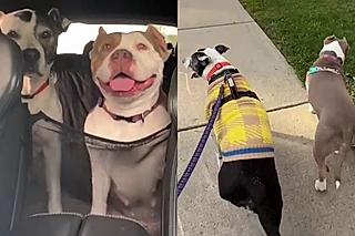 Cachorro de 14 anos com demência vê sua vida ganhar um novo brilho quando família adota pitbull abandonada
