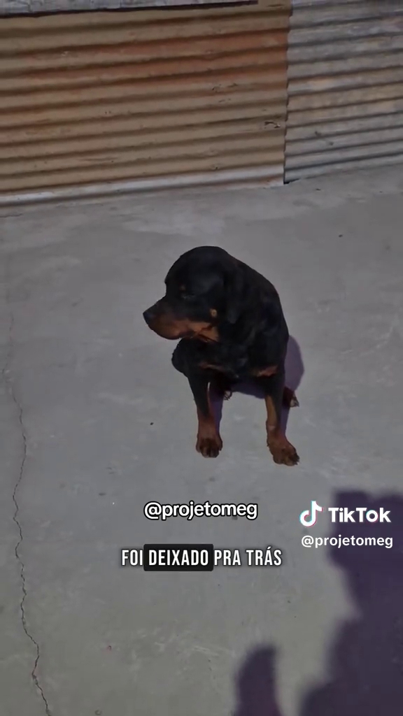 Um rottweiler, visivelmente um animal que cresceu em um lar, perambulava perdido pelo centro da cidade. Relatos apurados pela ONG indicam que o cão foi deixado para trás após a mudança de sua família.