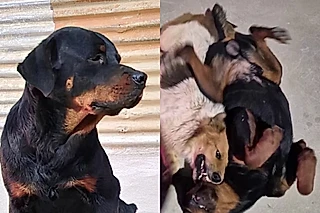 Foi então que um herói improvável apareceu. Um cão vira-lata, já conhecido na região por sua resiliência, aproximou-se do rottweiler.