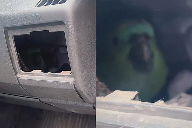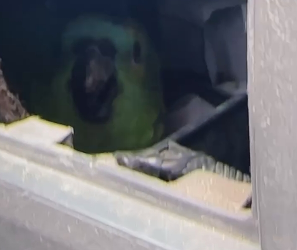 Foi nesse momento que eles descobriram um invasor de penas verdes e muita atitude: um papagaio selvagem.