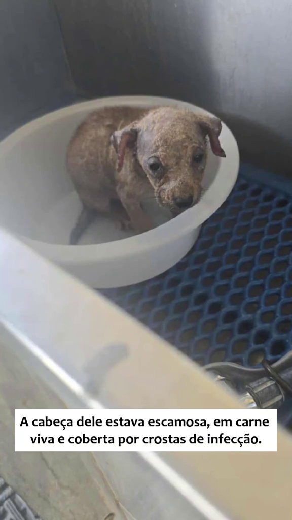 Seu corpo minúsculo estava devastado por uma condição de pele severa que havia arrancado quase todo o seu pelo, deixando a cabeça em carne viva e coberta por infecções.