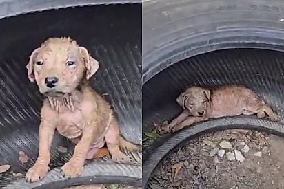 Abandonado em calor escaldante, filhote de cachorro cabisbaixo descobre que a vida pode ser boa após encontrar pessoa amorosa