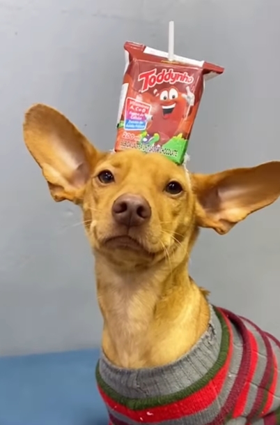 Já uma cachorrinha marrom, de roupa de toddynho e com um toddynho de verdade preso na cabeça, roubou a cena entre os comentários.