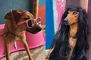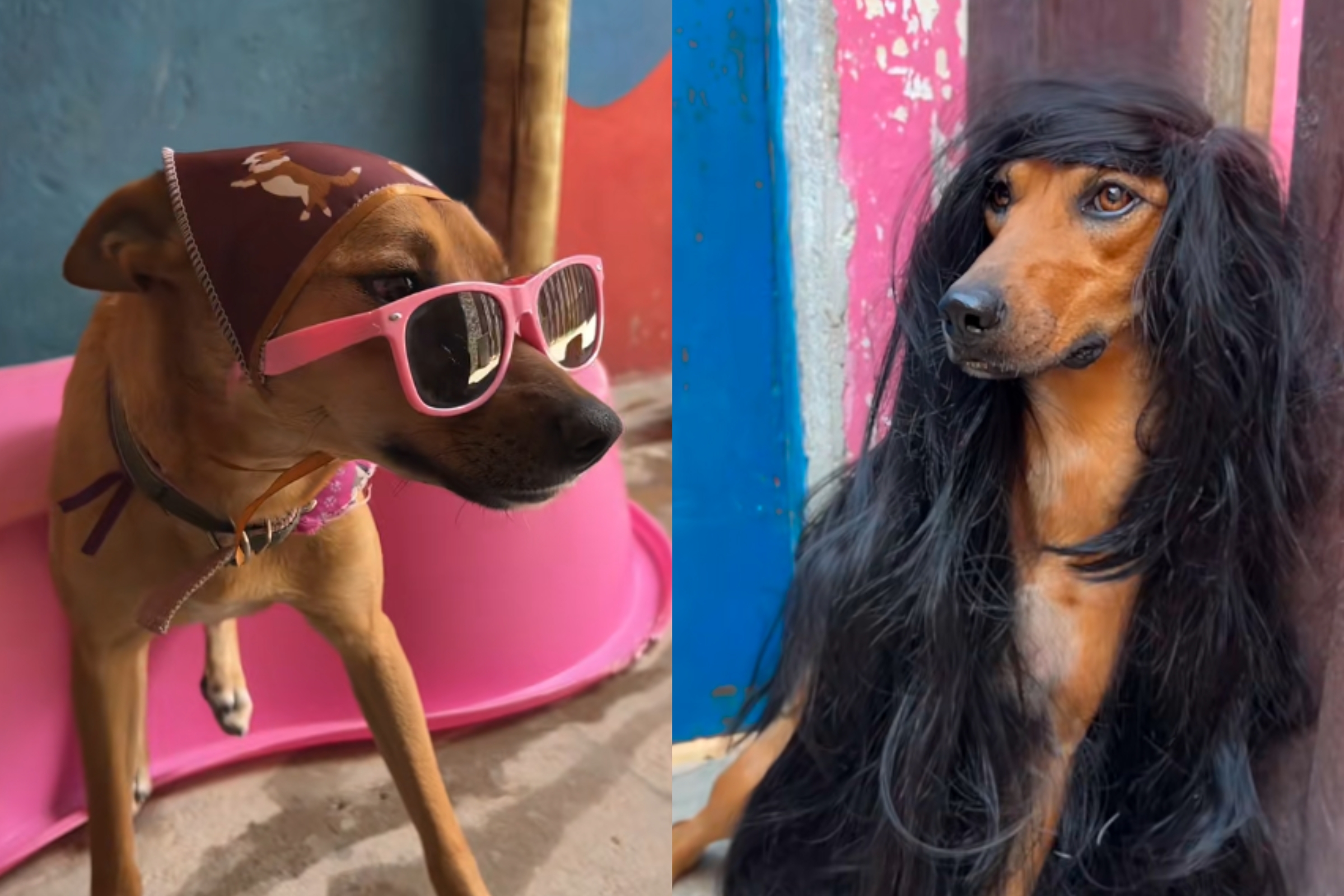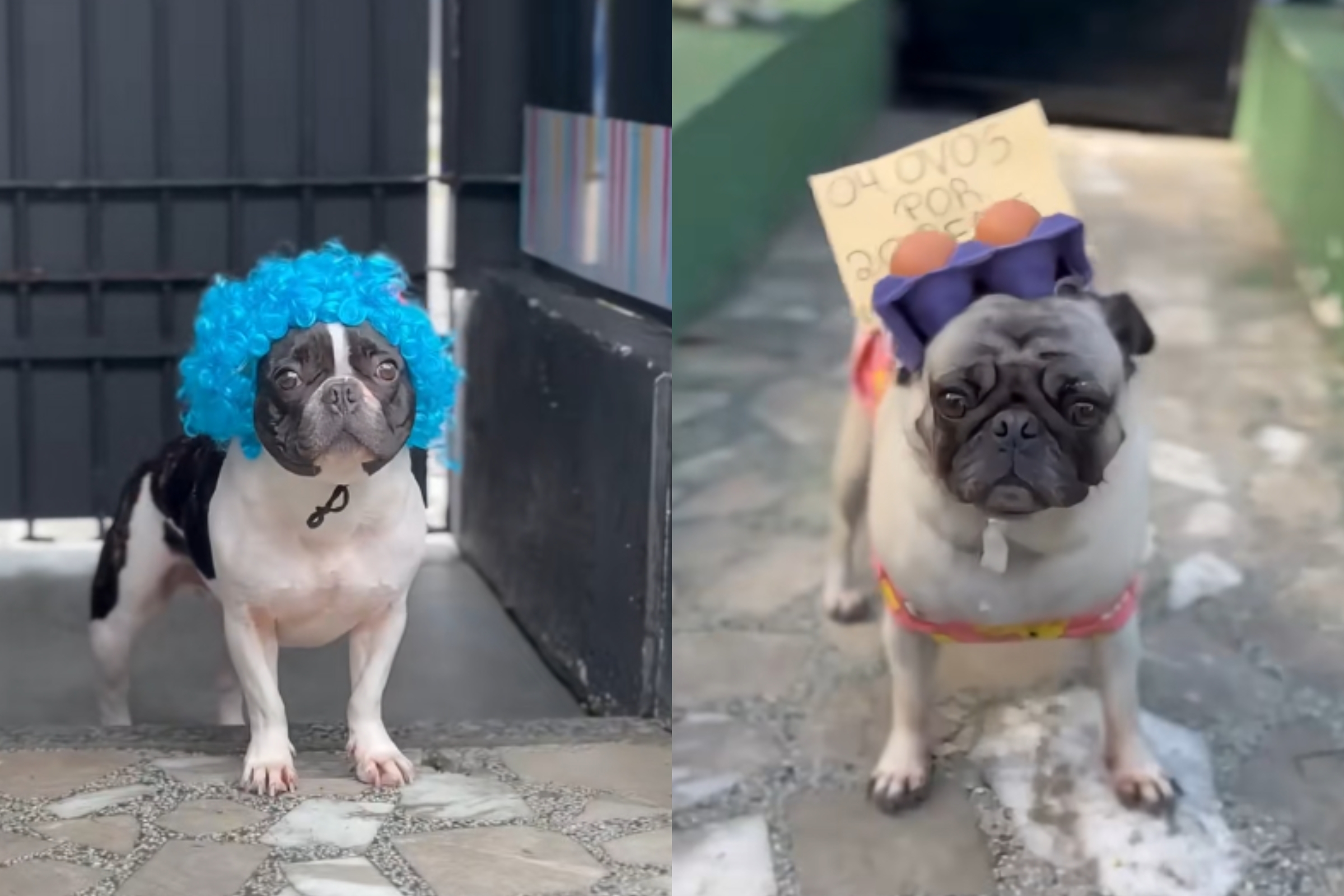 O cãozinho Manteiga, de pelagem cor de chocolate com leite, usou um toddynho na cabeça. Luna, em clima de Halloween, apareceu com um fantasma pendurado. Teve tiaras de flores, laços, fitas coloridas e até perucas extravagantes.