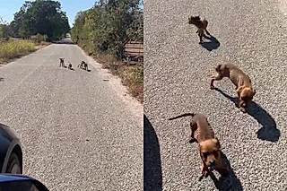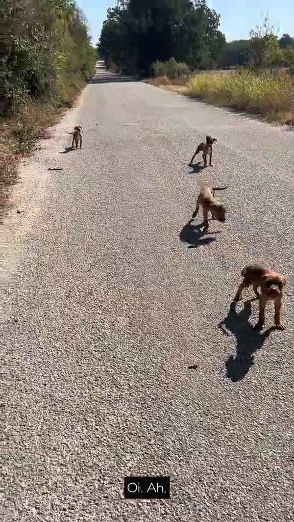 A motorista foi surpreendida por quatro pequenas criaturas que correram em sua direção em um pedido silencioso de socorro.
