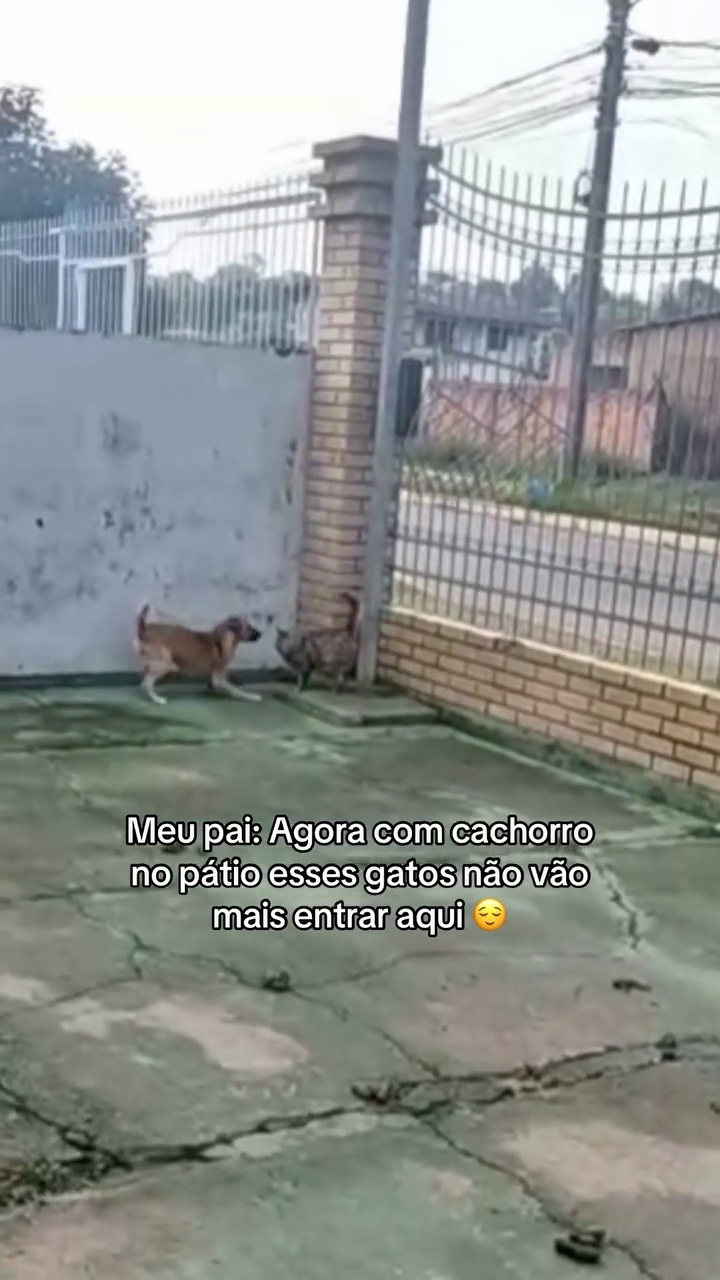 Homem coloca cachorro no pátio para gatos não entrarem, mas o contrário acontece