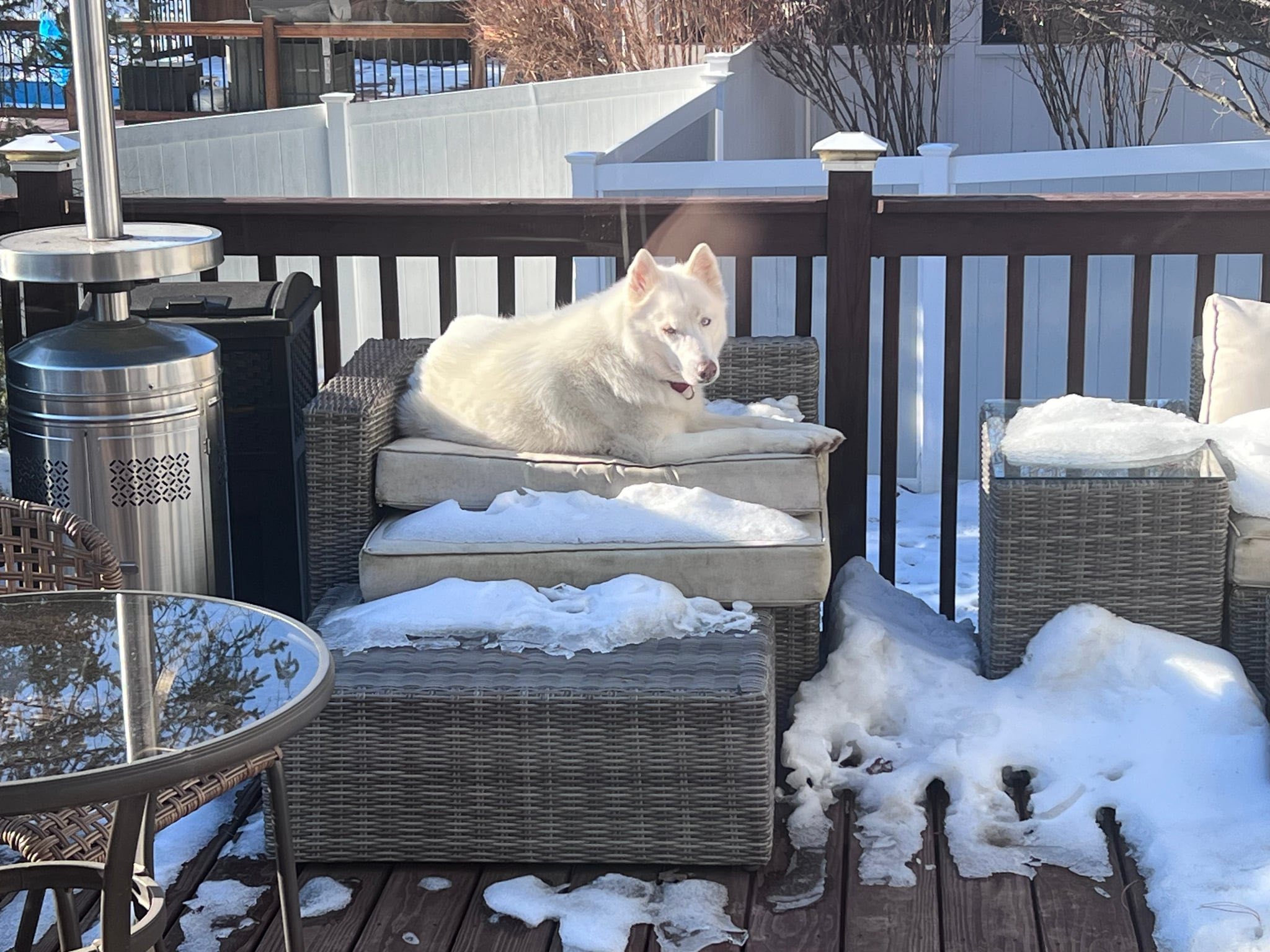 Ele descansa em camas macias, explora parques com seus irmãos caninos e conhece a neve, uma experiência adequada para um husky siberiano.