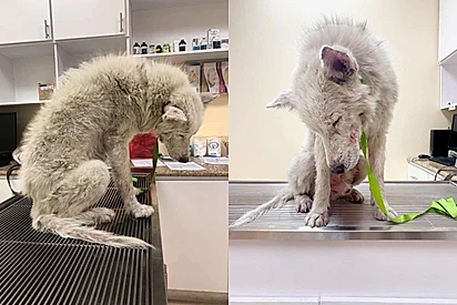 O cão que era comparado a uma criatura mítica agora ostenta uma pelagem branca, fofa e impecavelmente cuidada.