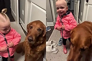 Menininha se despede de golden retriever e o que acontece a seguir derrete milhares de corações online