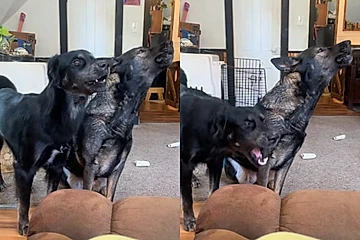 Cachorro tenta imitar uivo bonito da irmã mas o resultado vira em uma catástrofe performática