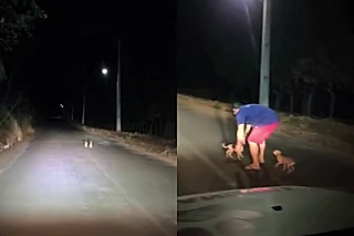 Ao voltar para casa, motorista avista 2 'anjinhos' cor de caramelo correndo no meio da pista e decide agir