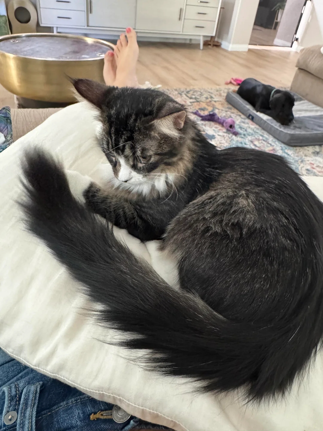 No início, Mary não acreditava muito nisso — achava apenas que era uma característica passageira do filhote. Mas, com o passar dos meses, percebeu que estavam certos. À medida que Gremlin crescia, sua cauda ficava cada vez mais longa e volumosa, chamando a atenção de todos.