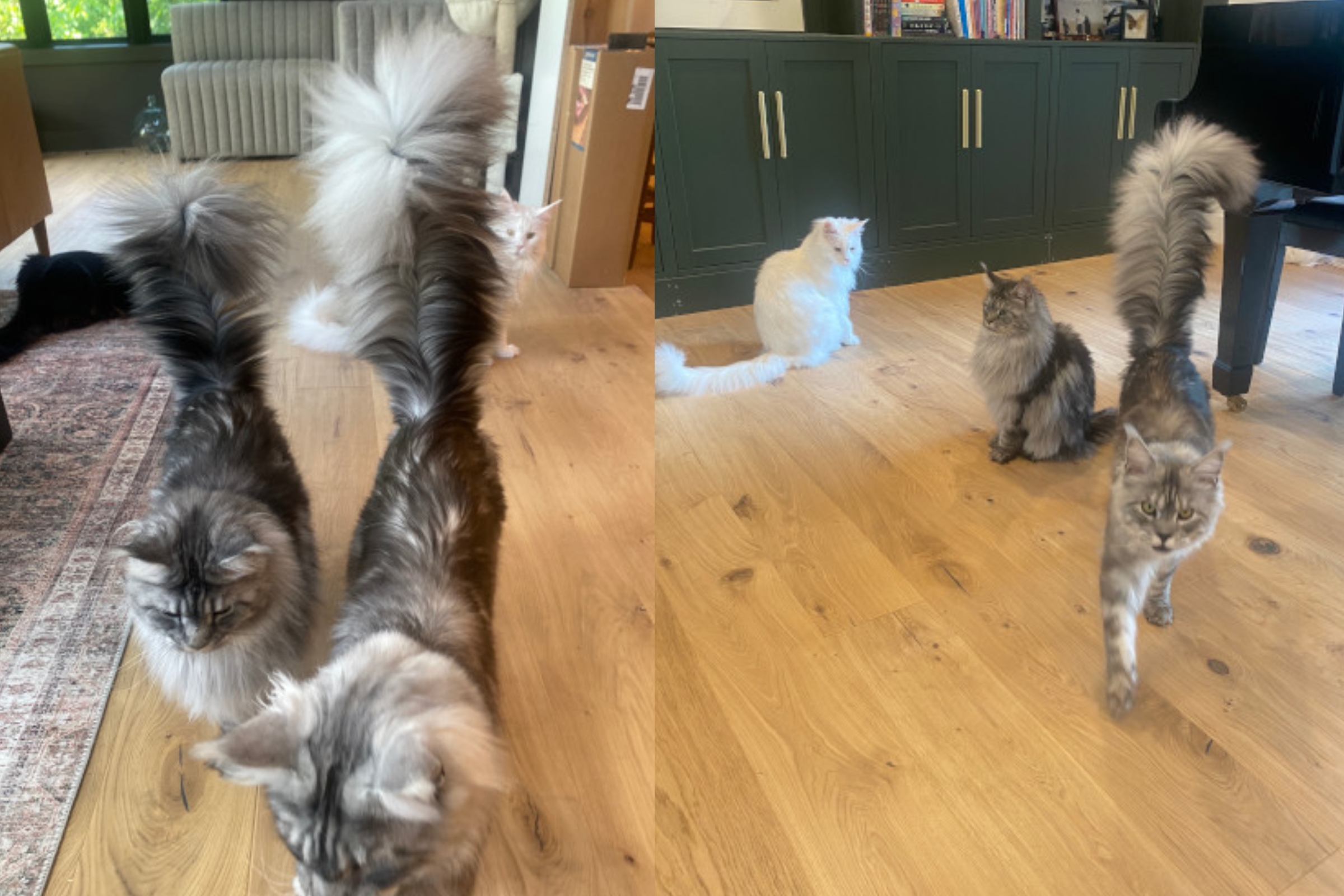 O Maine Coon é uma das maiores raças de gato doméstico do mundo. De pelagem espessa e patas largas que funcionam como “raquetes de neve”, eles são conhecidos por suas caudas longas e felpudas, que ajudam a se proteger do frio intenso.