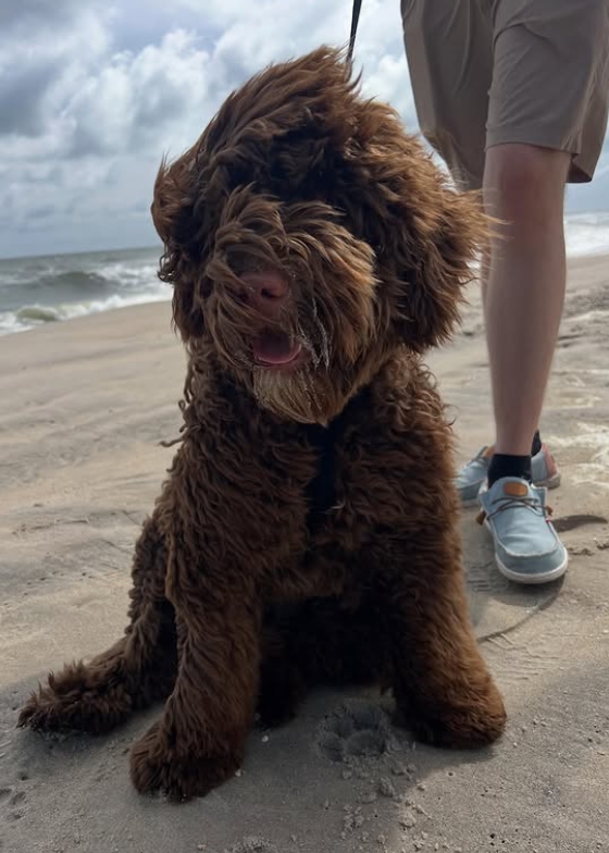 Riley decidiu deixar seu cãozinho Mako, um cão d’água português cheio de energia, passar o fim de semana na casa dos pais dela.