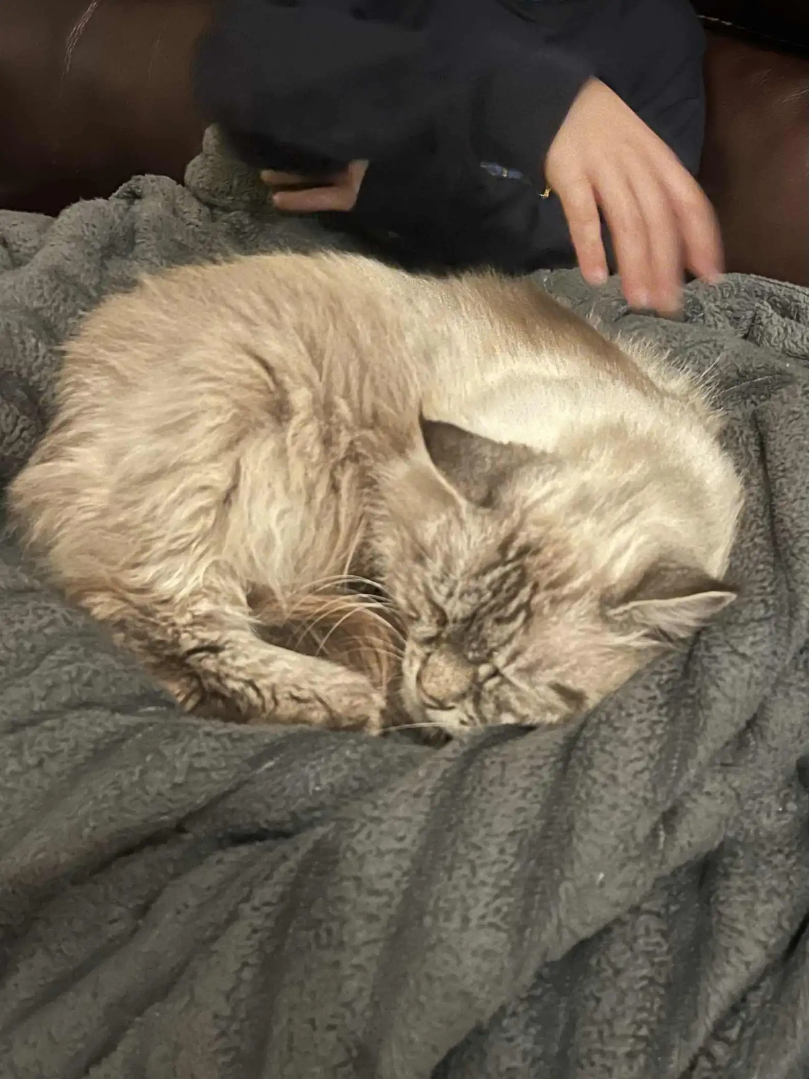 Assim que chegou em casa, a primeira preocupação de Ross foi garantir que a gata se sentisse segura e aquecida. Ele a acomodou perto da lareira, onde o calor ajudaria a afastar o frio e o cansaço acumulados. Em seguida, ofereceu água fresca e um pouco de comida, que ela devorou com fome e alívio.