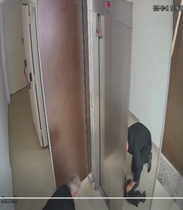 Em momento tenso, vizinho age rápido para salvar cachorro que ficou preso pela guia em elevador