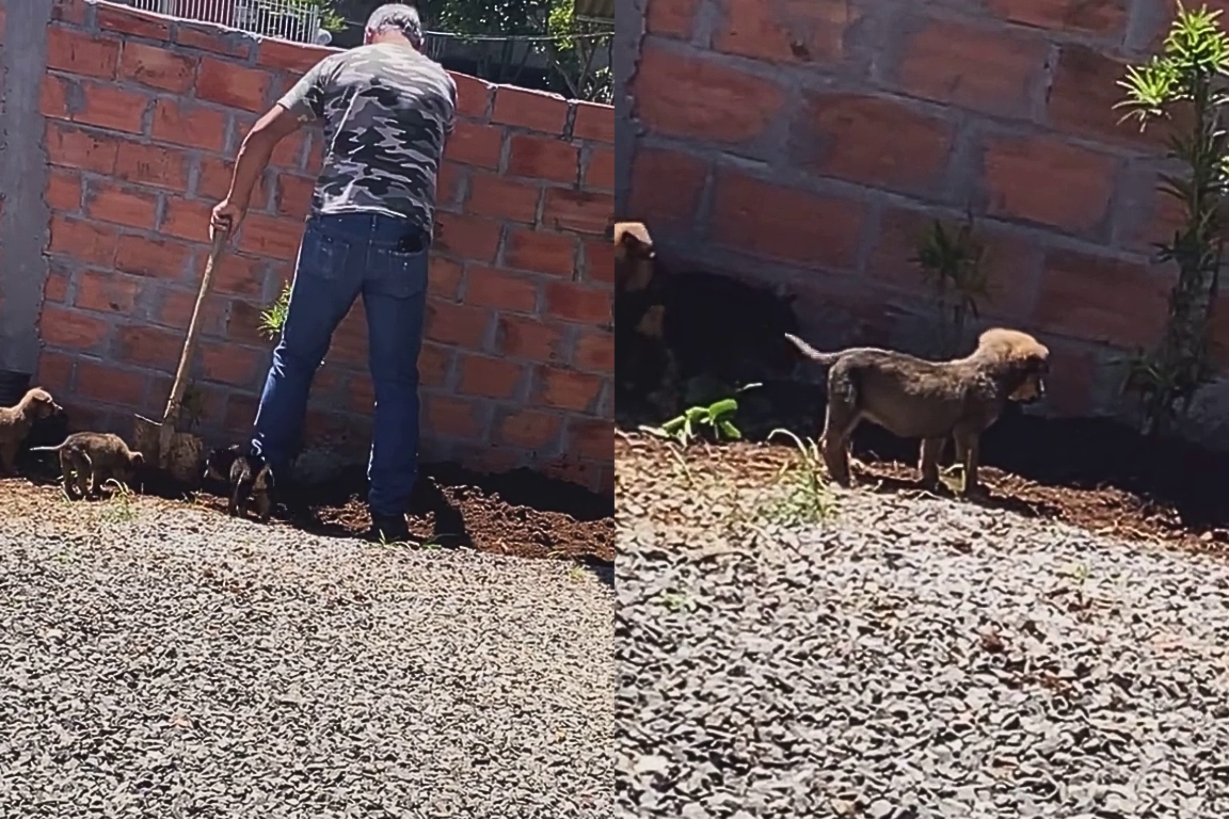 A cena, compartilhada pelo perfil @stella_mariaa, revela o cotidiano de um pai que, após adotar uma cadela, se recusou a doar os filhotes que ela gerou.