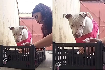 Caixa de gatos é jogada dentro de pátio com pitbull e reação de cão impressiona
