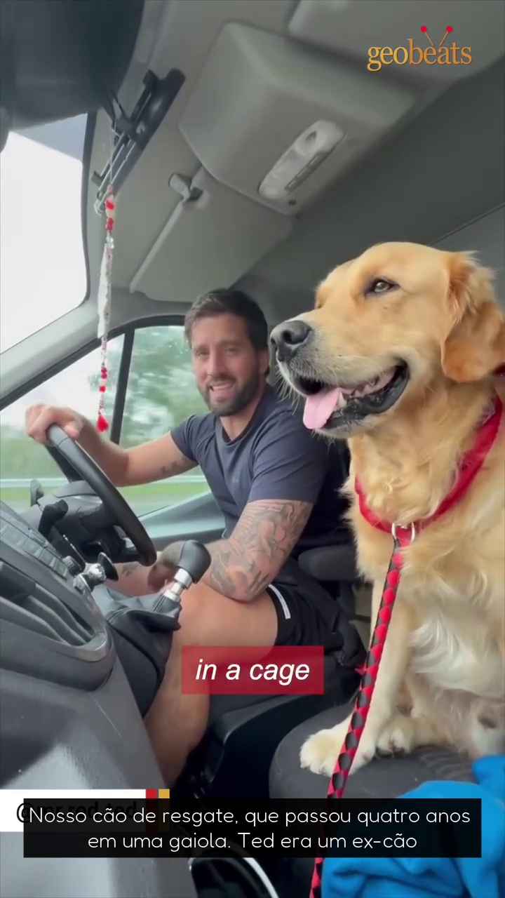 Depois de 4 anos em uma gaiola, cão sem esperança recupera o brilho no olhar com golden professor de alegria