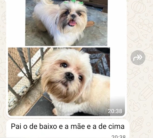 Logo depois de ver a foto de Pipoca, Priscila pediu à vendedora imagens dos pais da filhote e recebeu fotos de dois lindos shih-tzus, com pelos longos, rostos arredondados e aquele jeitinho característico da raça, além de uma foto do irmãozinho da ninhada.