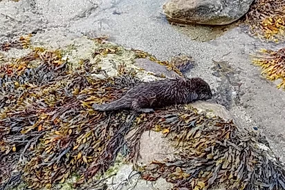 Tudo estava tranquilo em praia, até banhistas pararem tudo ao verem animal marrom molhado em rocha