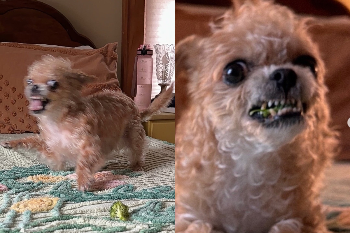 Conheça Spud, o cão que reage exageradamente toda vez que vê coisas insignificantes, como um brócolis