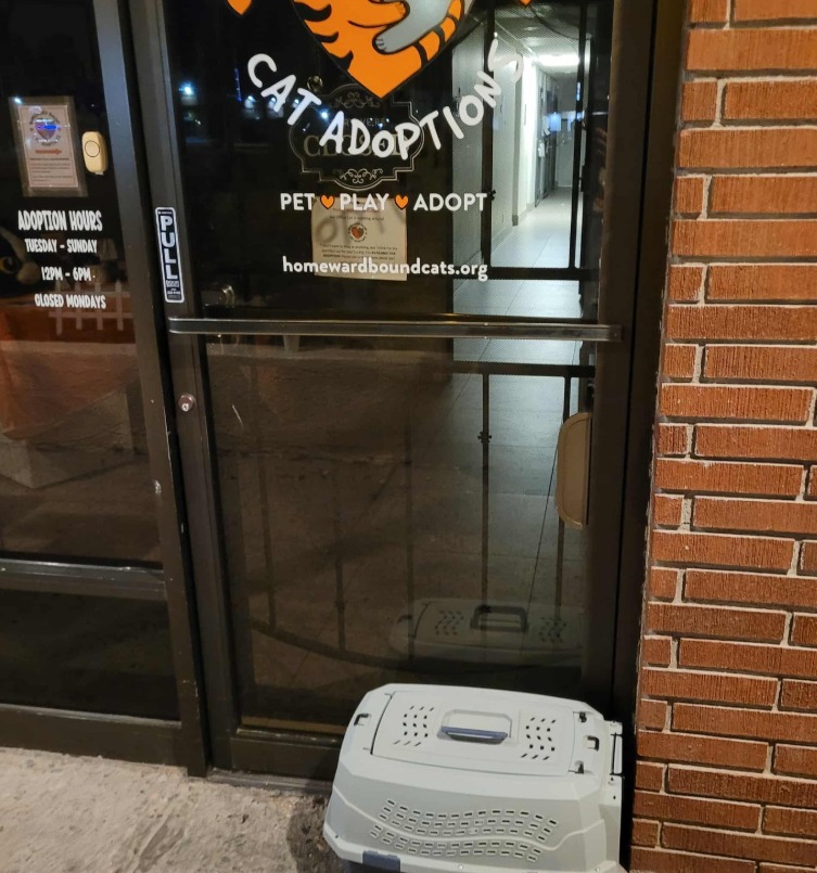 Era uma manhã comum na cidade de Las Vegas, nos Estados Unidos, quando uma voluntária da organização Homeward Bound Cat Adoptions chegou ao abrigo e se deparou com uma cena que partiria qualquer coração.