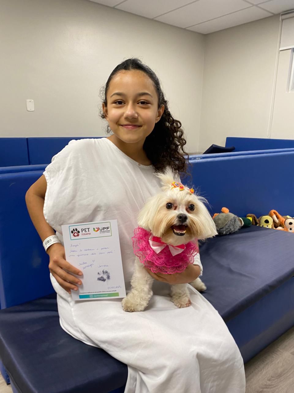 A oportunidade surgiu por meio do programa de Pet Terapia da Universidade de Passo Fundo, no Hospital Veterinário.